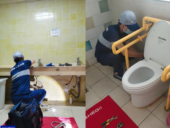 7月27日,在作为救灾中转中心兼灾民安置点的新乡市体育中心,恒洁工程师对多项产品进行了集中检修,并提供24小时值守服务,保障了卫浴设施的正常运转。
