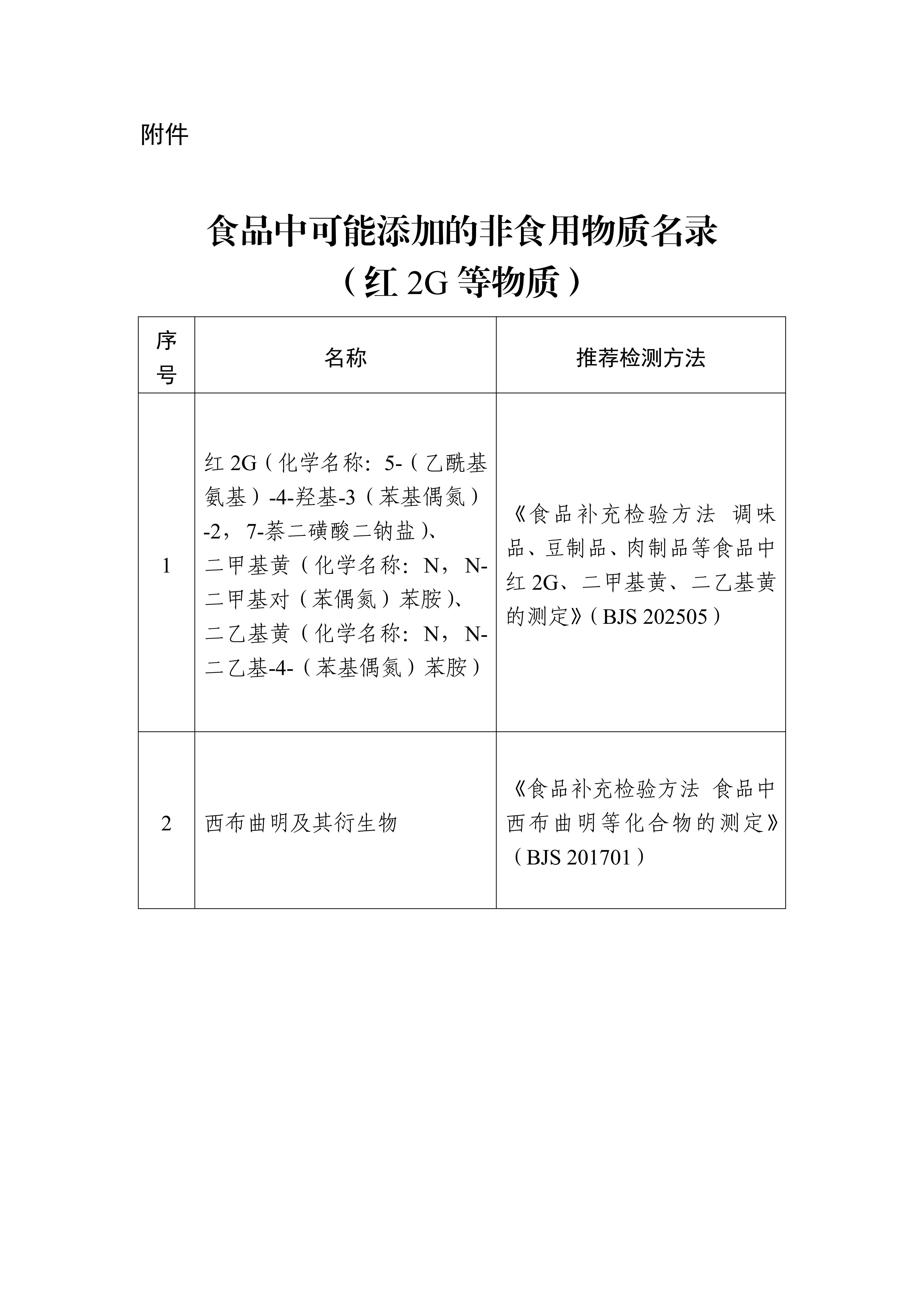 附:食品中可能添加的非食用物质名录(红2G等物质)